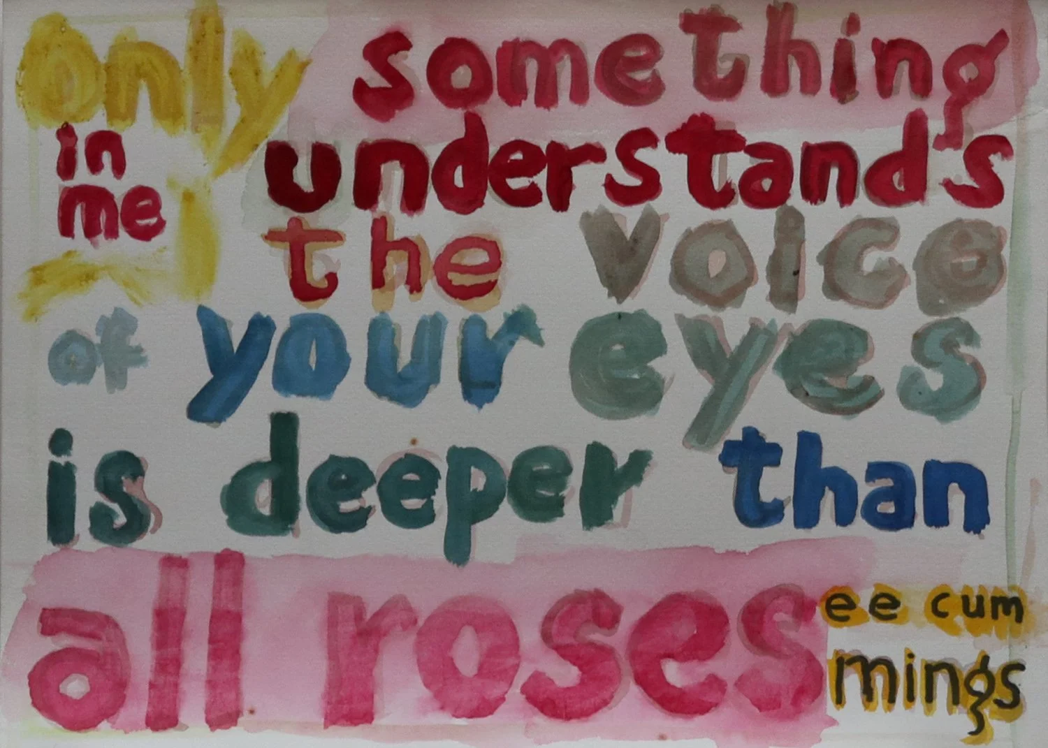 e.e. cummings line - text painting - watercolour, 11 X 15 inches, 1993